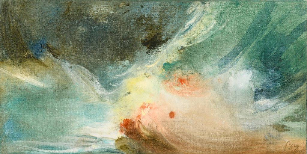 Dans ses paysages figuratifs, l’artiste donne vie à des scènes où ciel, mer et montagnes s’interpénètrent dans une harmonie sensible. Le spectateur y découvre des atmosphères chargées, presque irréelles, où les couleurs – allant du gris profond au bleu éclatant – traduisent les variations de l’émotion. La présence humaine, bien que discrète, apparaît parfois comme une ponctuation fragile dans l’immensité de la nature. Comme l’écrit Henri Raynal, « l’immense se faisait intime. On y oubliait quels périls il recélait. Une complicité étrange vous accordait à lui. »