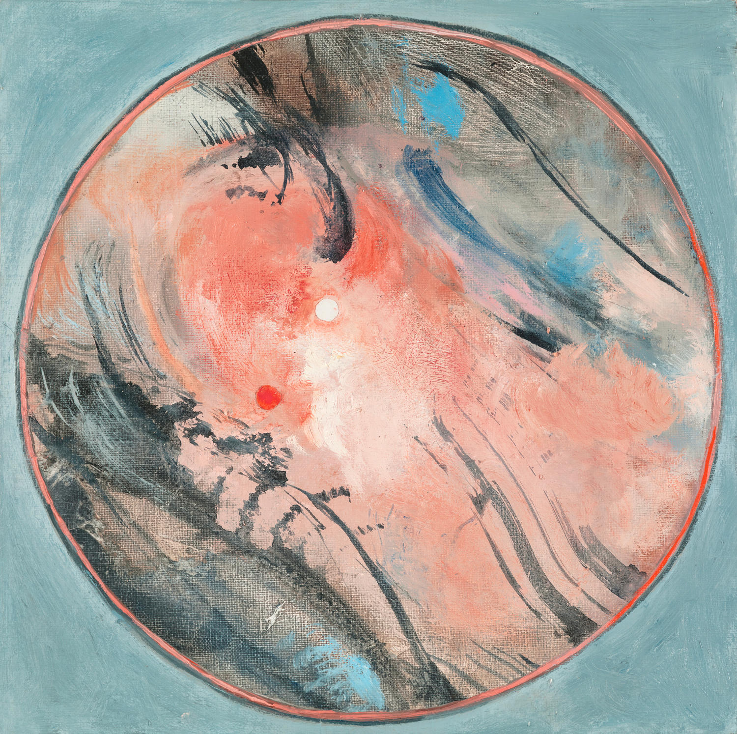 Les tondi, quant à eux, renvoient à une tradition ancienne – un clin d’œil assumé à la Renaissance – tout en s’inscrivant dans une dynamique résolument contemporaine. Ces œuvres circulaires, où les pigments se mêlent dans des mouvements fluides, évoquent les origines du monde, l’émergence de l’élément pur, non encore différencié. Pour Christine Bry, ce sont des œuvres de l’instant premier, “un flux magnétique, magmatique, qui semble surgir de loin, du fond des galaxies.”