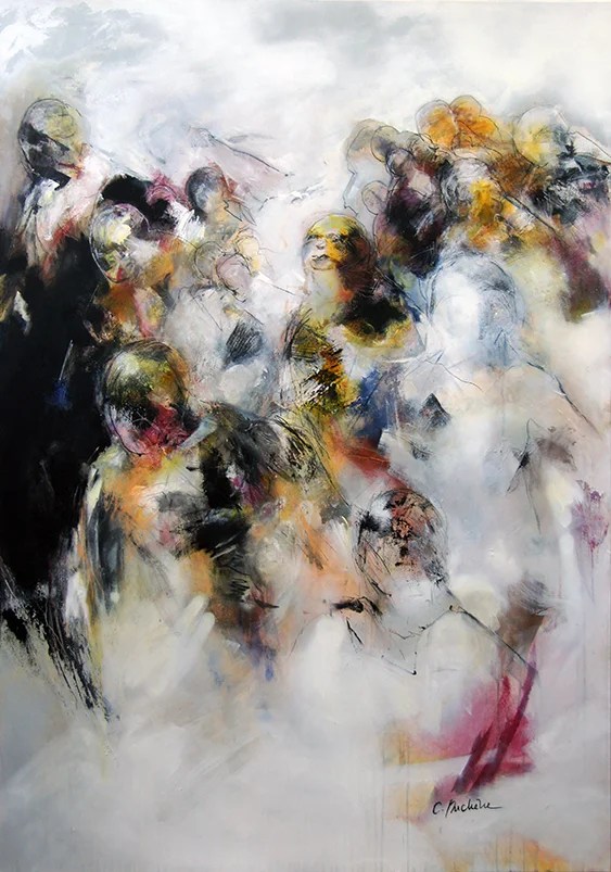 Dans ses représentations de foules, l’artiste capte l’énergie collective, la densité des corps pressés les uns contre les autres, les mouvements confus de la masse. Loin de l’anonymat froid, ses foules sont vibrantes, colorées, pleines de vie et de chaos maîtrisé, traduisant à la fois la beauté et l’ambiguïté de la condition humaine en société.