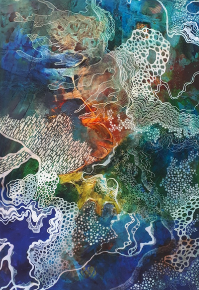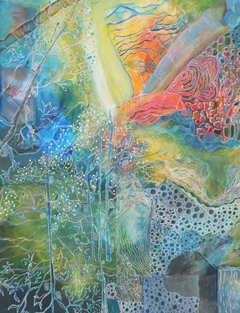 Elle explore différentes techniques – peinture acrylique, encres, pastels à l’huile, collages – qu’elle applique sur toile ou sur papier. Son œuvre puise sa force dans l’écoute profonde de la Terre, traduisant la vibration de la nature en une harmonie de formes et de couleurs. Chaque création naît d’un instant d’inspiration, donnant naissance à des cycles picturaux et poétiques tels que Le Chant de la Terre, Le Chant de l’Eau ou Le Chant des Arbres.