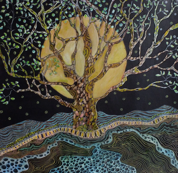 Cette œuvre propose une vision poétique de la nature, oscillant entre le figuratif et le symbolique. L’arbre, souvent vu comme un pont entre le ciel et la terre, incarne ici une force vitale intemporelle.